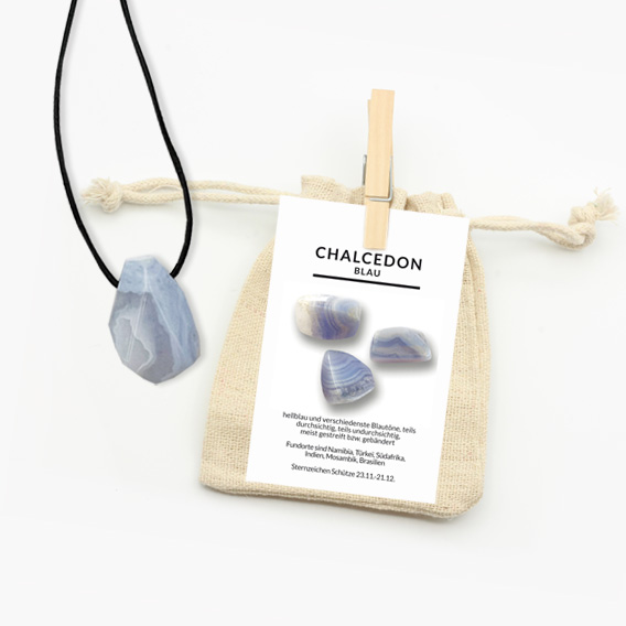 Zur optimalen Aufbewahrung wird der wunderschöne, facettierte Chalcedon Trommelstein Anhänger in einem Natur-Jutebeutel geschützt. Eine ausführliche Beschreibungskarte wird mitgeliefert. Auf dieser sind allgemeine Informationen sowie die Heilwirkungen auf Körper, Geist und Seele gut zum Immer-wieder-Nachlesen zusammengefasst.