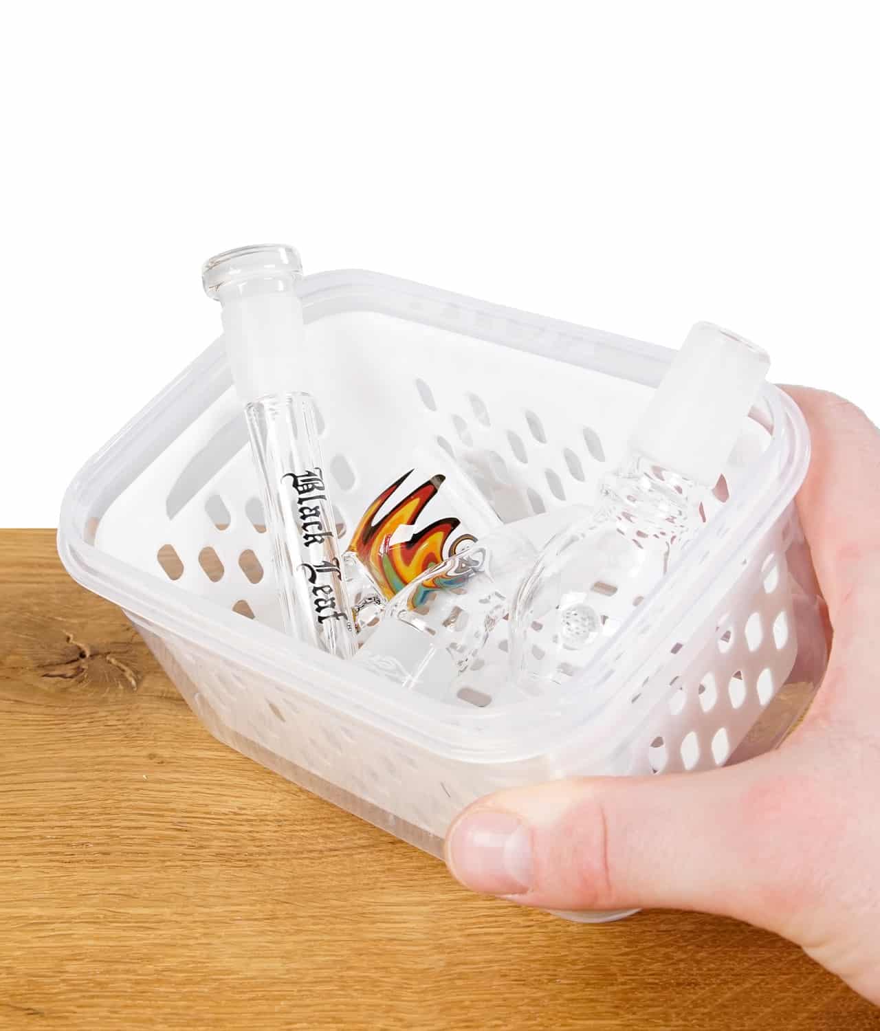 Das Black Leaf Blazing Bath ist eine praktische und Schale mit integriertem Sieb, die speziell für kleineres Bong- & Dabbing-Zubehör wie Vaporizer-Zubehörteile, Dynavaps, Banger, Bong-Köpfchen sowie -Adapter, Carb Caps und Dabber entwickelt wurde. Diese multifunktionale Wanne ermöglicht es dir, deine Zubehörteile einfach und gründlich zu reinigen und gleichzeitig als Aufbewahrungsdose zu dienen.
