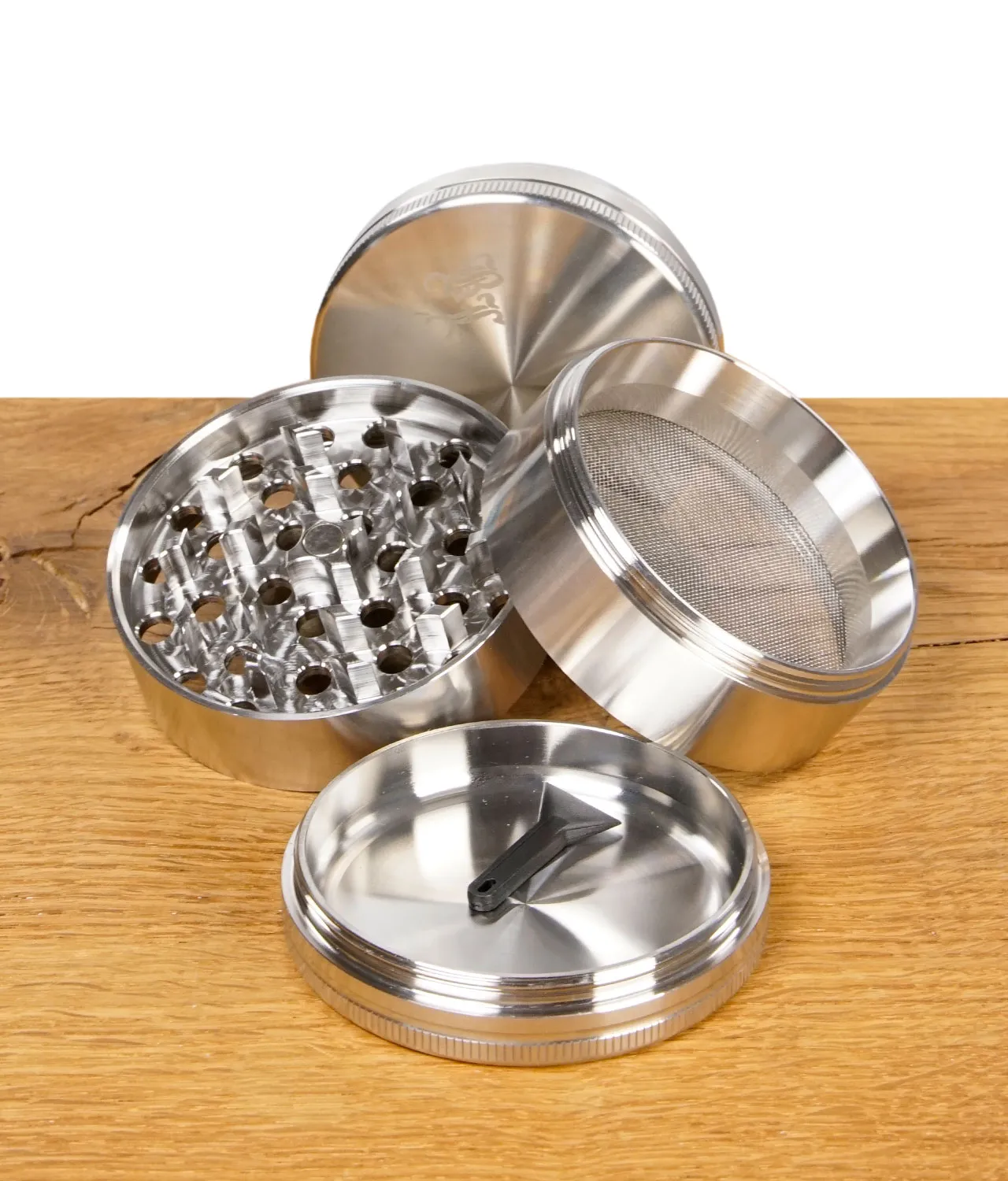 Dieser hochwertige Edelstahl Grinder ist als 4-teiliges System konzipiert, das dir maximale Funktionalität bietet: