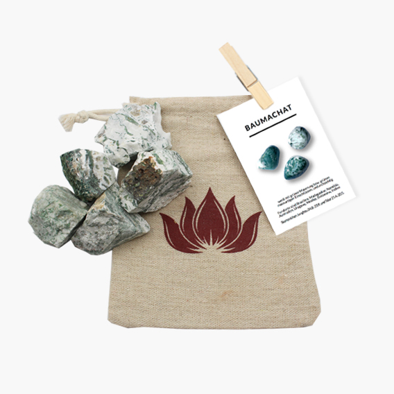 Die Baumachat Rohsteine im Leinenbeutel können für vielfältigste Dekorationen oder Heil-Anwendungen verwendet werden.