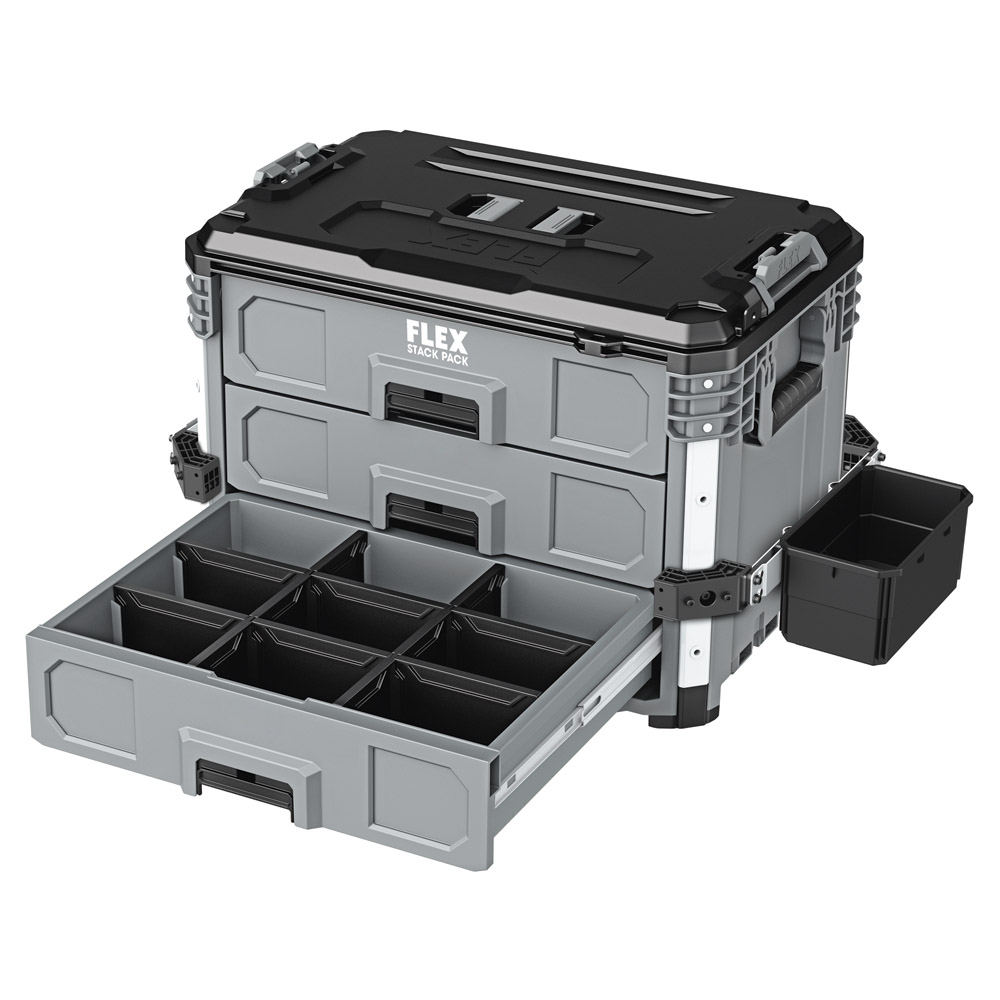 Mit dem robusten Aufbewahrungs- und Transportsystem lassen sich Werkzeuge und Zubehör problemlos zur Baustelle transportieren.