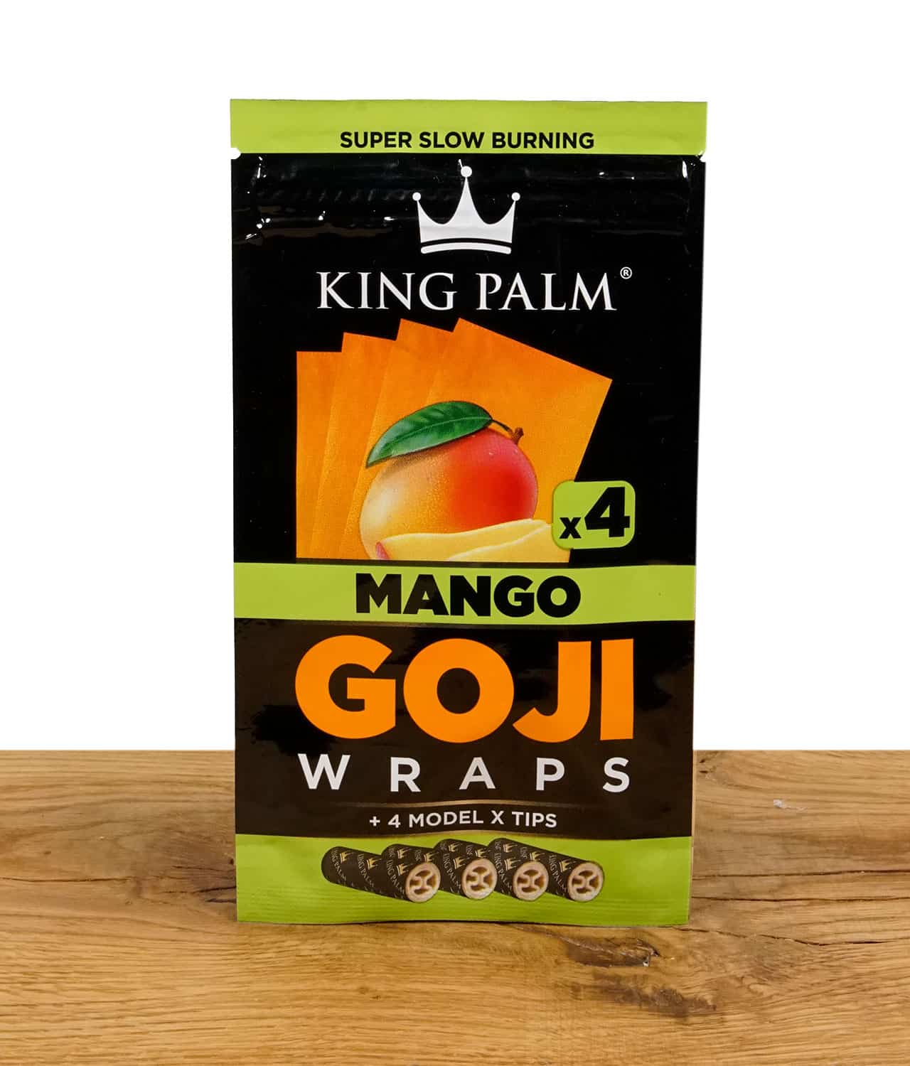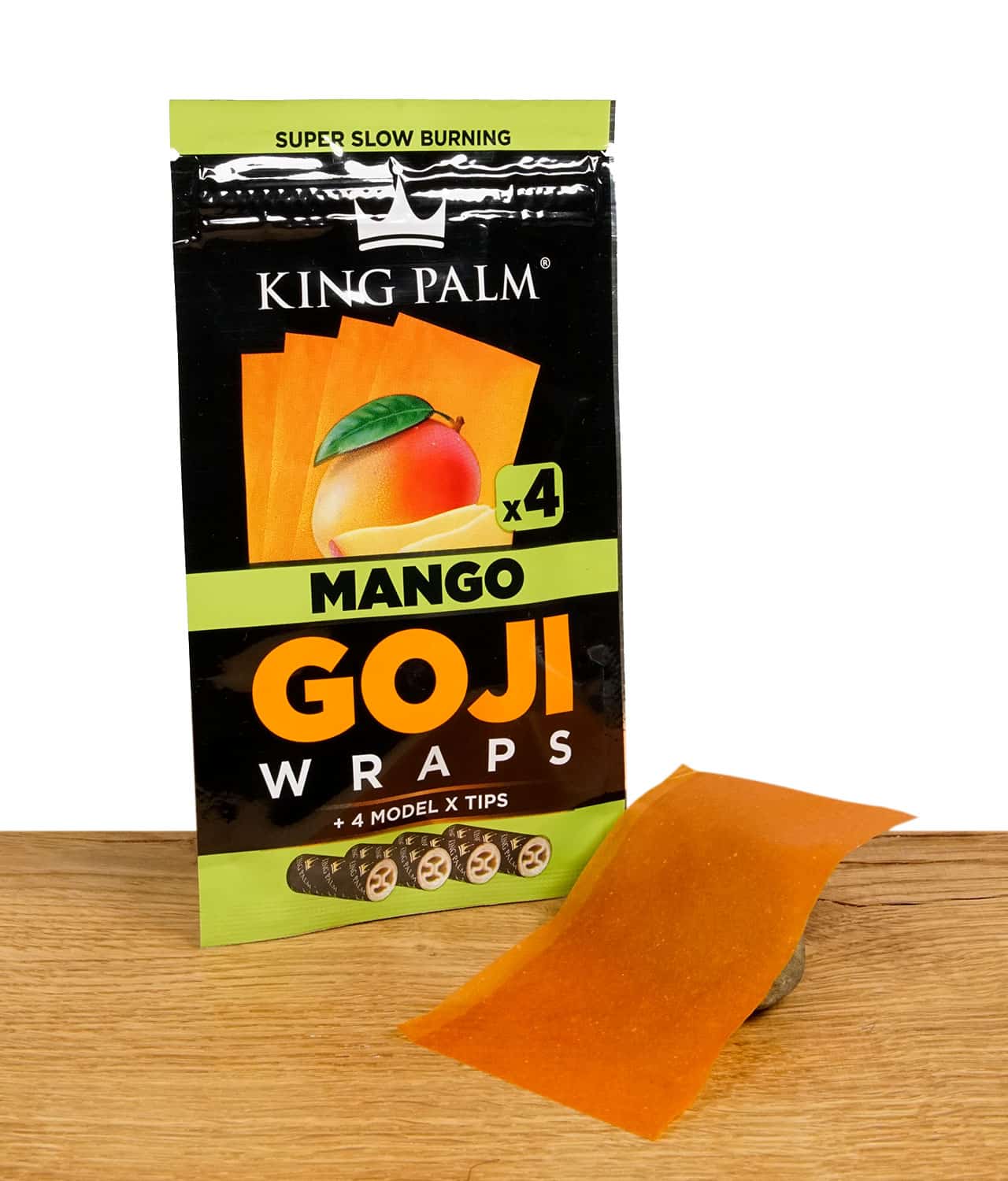 Tauche ein in die exotische Welt der King Palm Goji Wraps mit Mango-Geschmack! Diese einzigartigen Wraps sind nicht nur ein Genuss für deinen Gaumen, sondern auch für deine Seele. Hergestellt aus nachhaltig geernteten Goji-Beeren und mit einem Hauch von saftiger Mango verfeinert, bieten diese Wraps eine unvergleichliche Raucherfahrung. Jede Packung enthält vier Goji-Wraps und vier Model X Filtertips, damit du deinen Rauchgenuss auf das nächste Level heben kannst. Die leicht süße Note der Beeren verbindet sich mit den natürlichen Terpenen zu einem reichen, glatten Mango-Goji-Geschmack. Jeder Wrap bleibt feucht und weich und ist super einfach zu versiegeln. Rolle sie von Hand oder lade sie in deine Lieblings-King-Size-Roller.