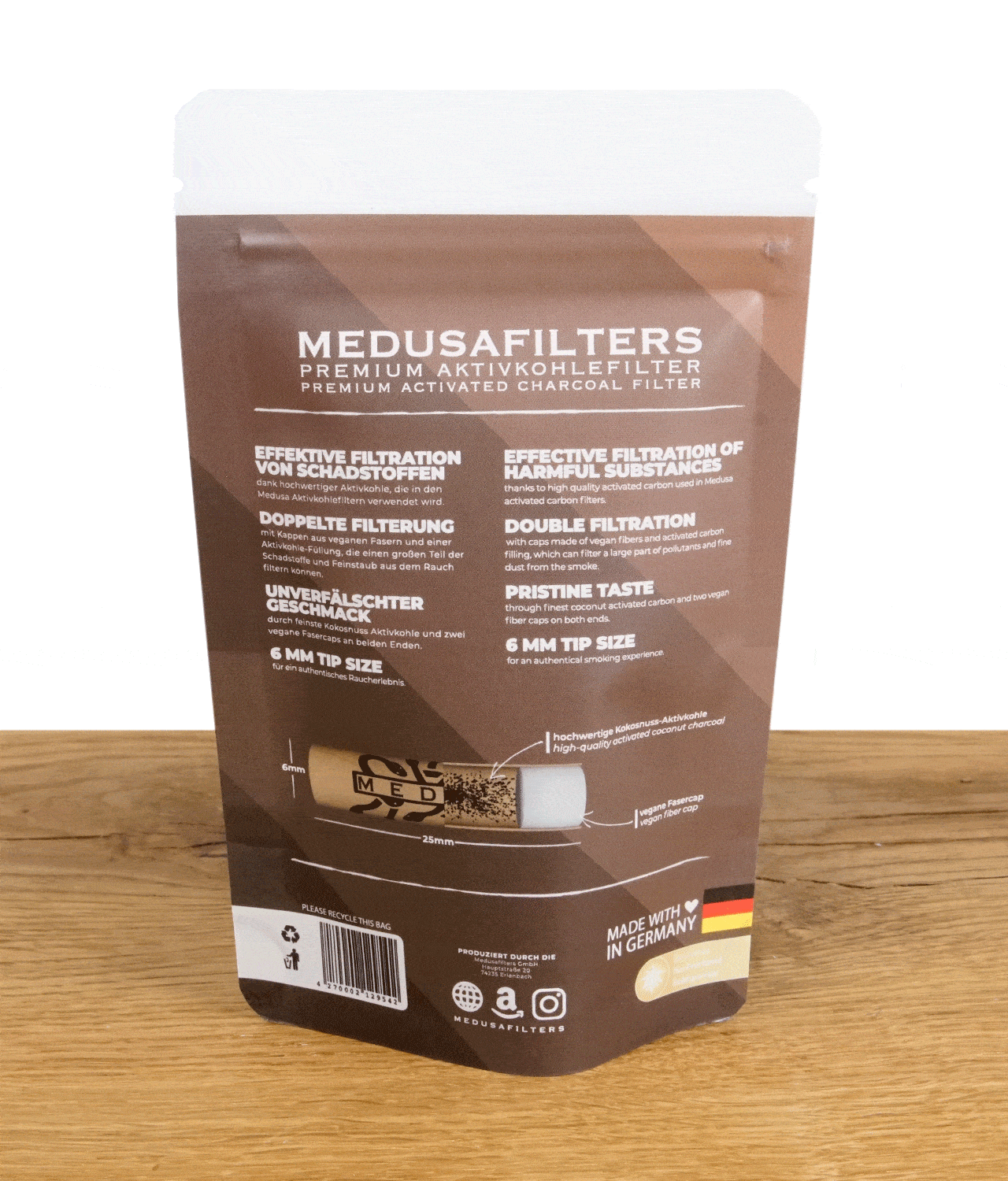 Medusa Filter schaffen es mit ihrem einmaligen Filtersystem, bestehend aus umweltfreundlicher Zellulose und hochwertiger Kokosnussschalen-Aktivkohle den Genuss beim Konsum auf ein neues Level anzuheben. Die neuen Medusafilters Tip-Size erleichtern neben der minimal angerauten Außenseite das Eindrehen und lassen selbst Anfänger wie Profis aussehen. Schadstoffe beim Rauchen und Aktivkohle im Mund gehören der Vergangenheit an.