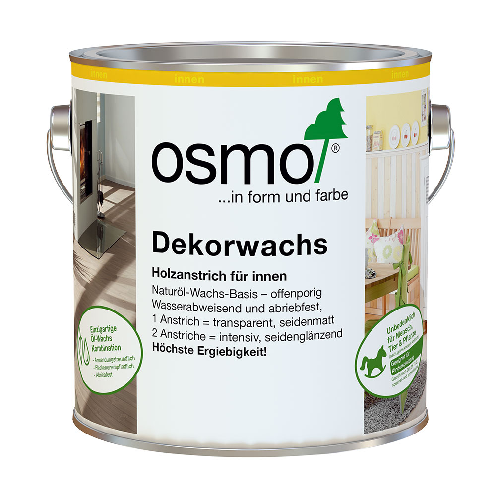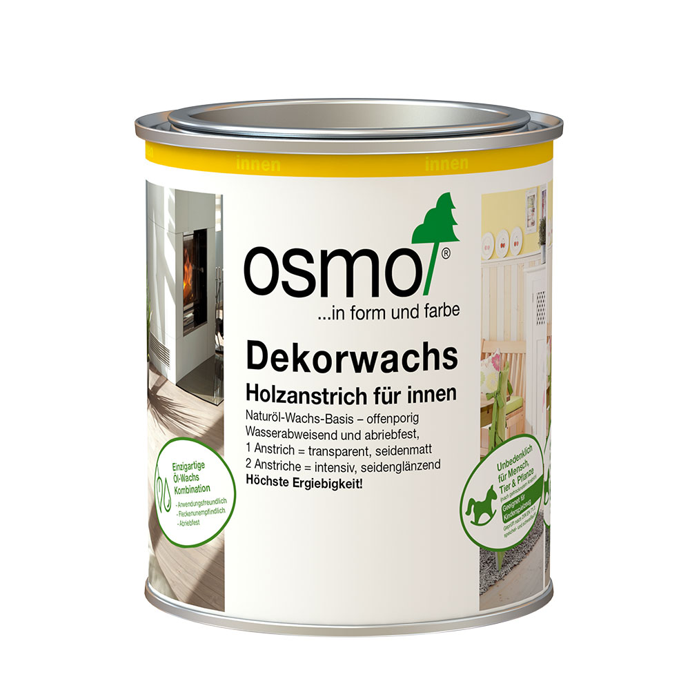 Osmo Dekorwachs deckend ist ein Holzanstrich für den modernen, farbigen Innenausbau. Der natürliche Charakter des Holzes bleibt erhalten. Das Holz wird wasserabweisend, wischfest und unempfindlich gegen Haushaltschemikalien.