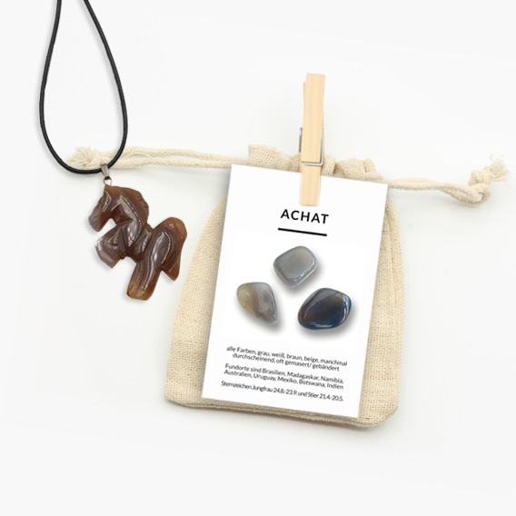 Zur optimalen Aufbewahrung wird der wunderschöne Pferd Anhänger in einem Natur-Jutebeutel geschützt. Eine ausführliche Beschreibungskarte wird mitgeliefert. Auf dieser sind allgemeine Informationen sowie die Heilwirkungen auf Körper, Geist und Seele gut zum Immer-wieder-Nachlesen zusammengefasst.