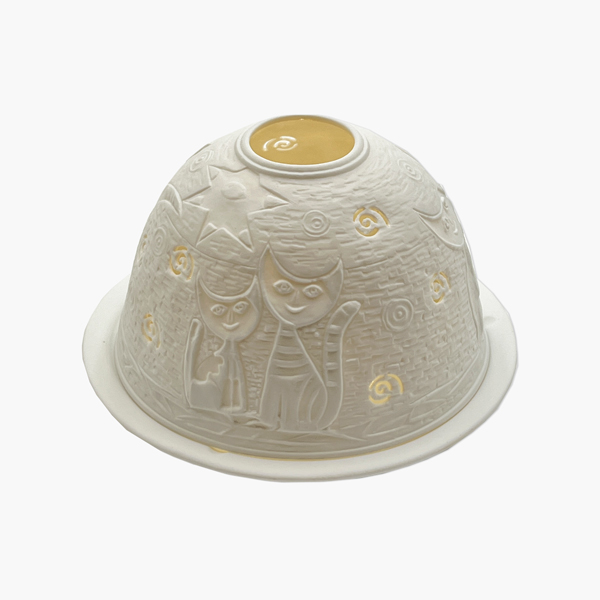 Die Motive sind auf dem Teelicht rundherum gestaltet. Die Abbildung zeigt die Beleuchtung mit einem elektrischen Led-Licht. Bei der Verwendung eines klassichen Teelichts ist die Ausleuchtung des Windlichtes nicht so hell, wirkt dafür aber lebendiger und verbreitet eine gemütliche Atmosphäre.