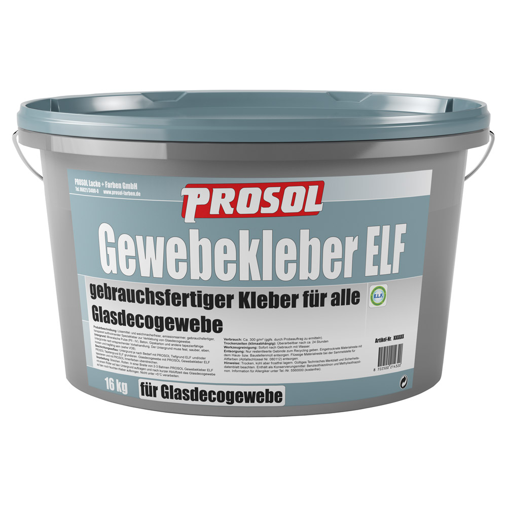 Lösemittel- und weichmacherfreier, emissionsarmer, gebrauchsfertiger, transparent auftrocknender Spezialkleber zur Verklebung von Glasdecogewebe.