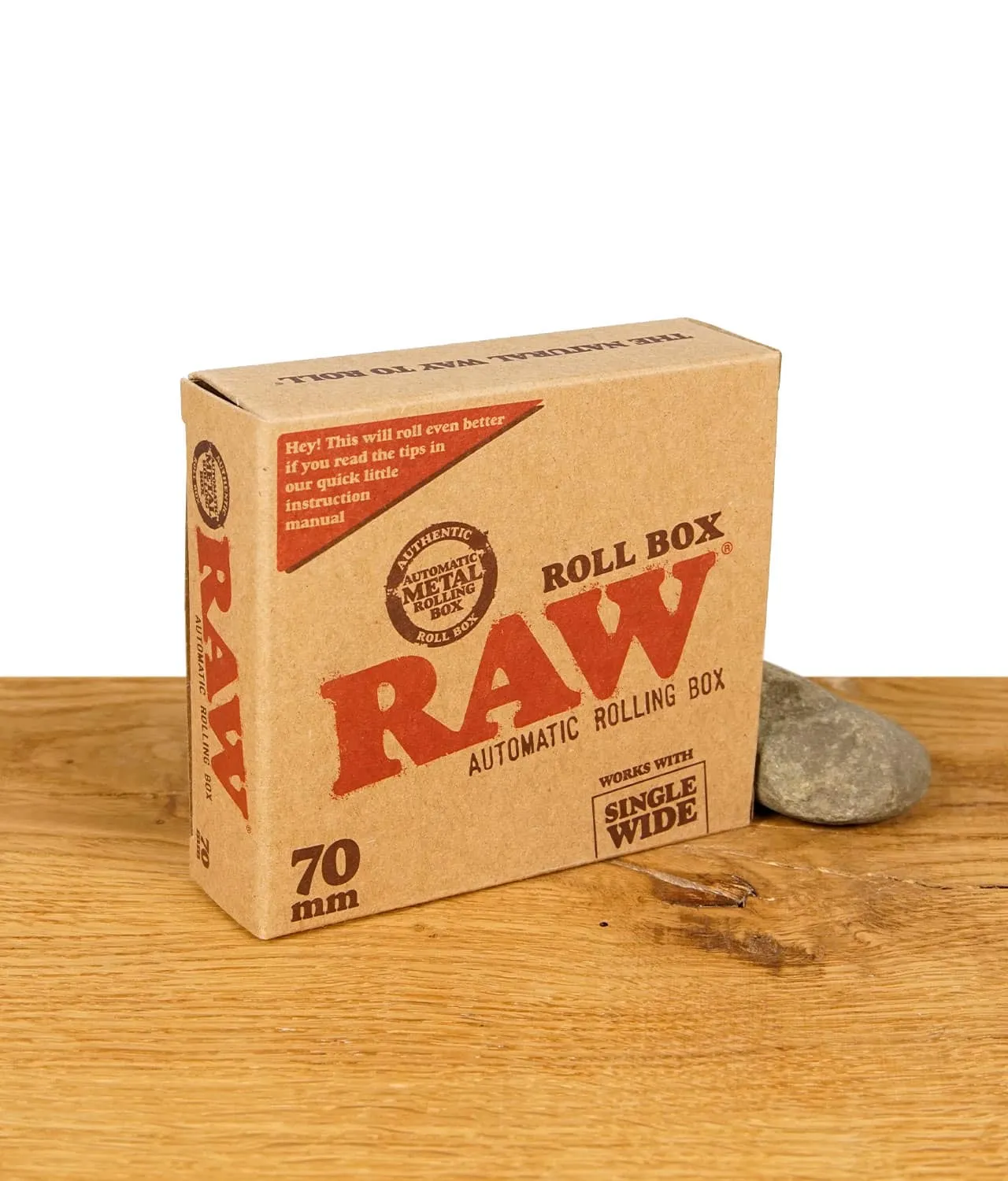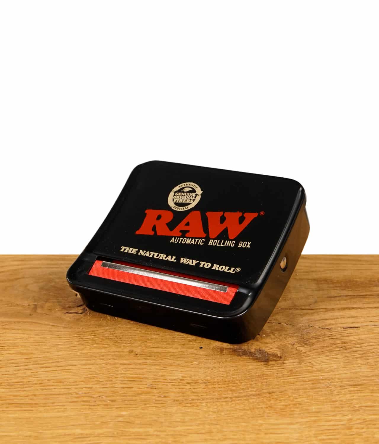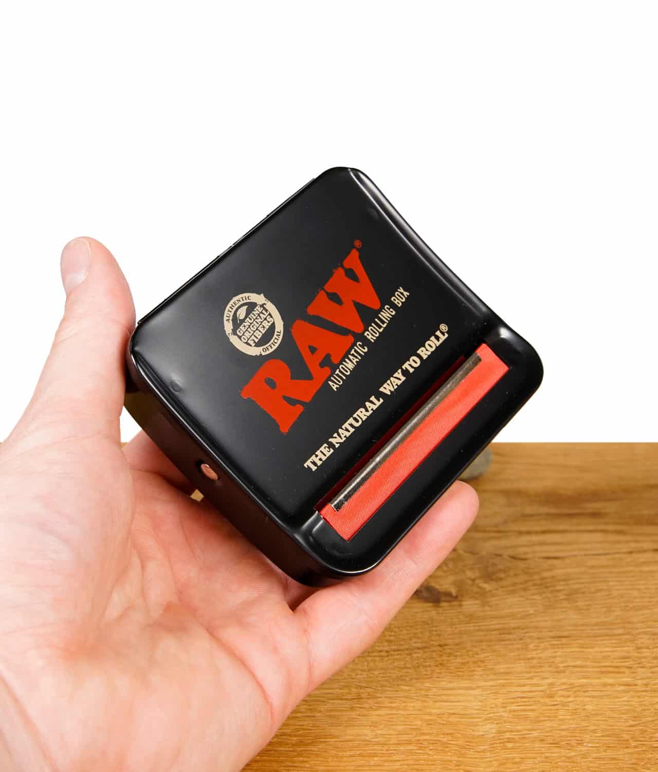 - Öffne die Box: Drücke die seitlichen Hebel nach innen, um die RAW Rolling Box zu öffnen.