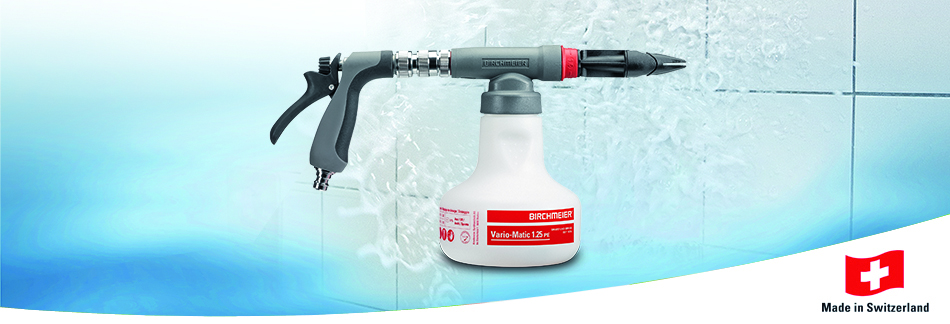 Ob zum Schäumen, Reinigen, Desinfizieren oder Entkalken im Sanitär- und Duschbereich von Schwimmbädern, Schulen und Sporthallen, oder in Grossküchen, in der Fleischverarbeitung und in Metzgereien, oder auch zur Reinigung von Autos, Lastwagen, Zügen und Flugzeugen: Der neue Vielkönner Vario-Matic 1.25 PE überzeugt mit zusätzlichen Funktionen, neuem Design und chemisch beständigeren Materialien.
