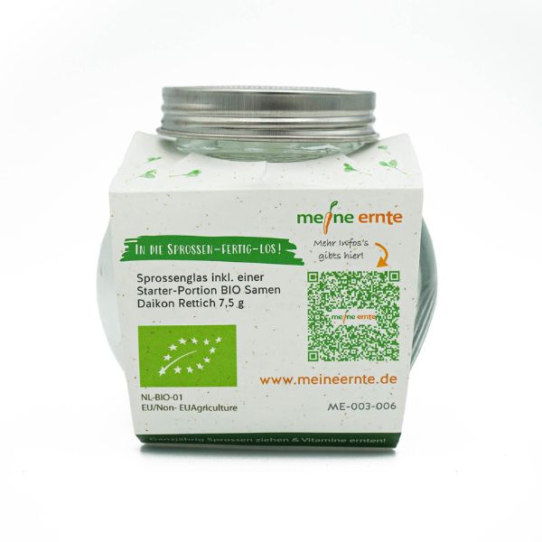 Sprossen zu ziehen ist wohl der leichteste Einstieg in das Abenteuer Selbstversorgung. Zuhause auf der Fensterbank gedeihen die leckeren kleinen Kerlchen aus Bohnen, Ölsaaten, Kohlsamen und anderen Gemüsepflanzen innerhalb weniger Tage. Die jungen Keimlinge stecken voller wertvoller Vitamine, gesundem Eiweiß, Mineralstoffe und sekundärer Pflanzenstoffe. Und weil sie so gesund sind und einfach zu allen deinen Lieblingsgerichten passen, sind sie die ideale Ergänzung auf deinem Speiseplan. Für die Anzucht von Sprossen brauchst du weder Erde noch Watte. In unserem Sprossenglas wachsen sie einfach und schnell im Glas unter einem feinmaschigen und rostfreien Edelstahlsieb im Mikroklima des Glases. Die Samen müssen nur zweimal täglich gespült werden. Dank des auf das Glas geschraubten Siebes geht das kinderleicht.