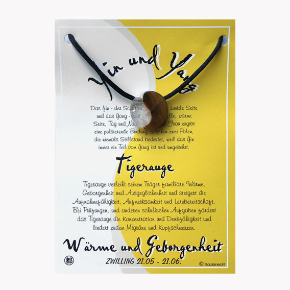 Das Tigerauge ist dem Sternzeichen Zwilling zugeordnet. Menschen mit dem Sternzeichen Zwilling sind in der Zeitspanne 21.5.-21.6. geboren.