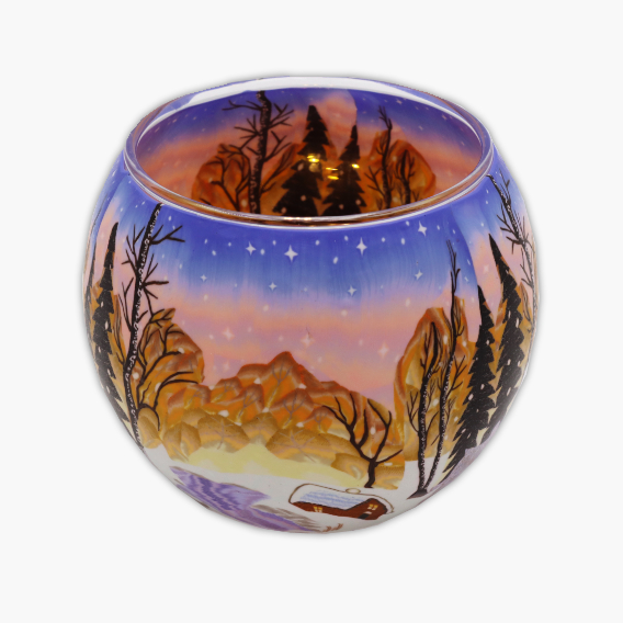 Windlicht Leuchtglas aus Fimo „Herbst-Winter“