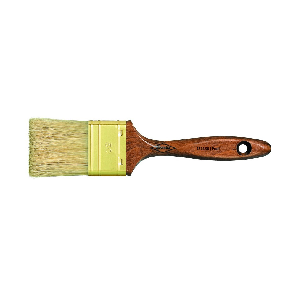 Flachpinsel, Profi, IX. Stärke, helle Borsten, Messingbleche, teakholzfarbige Stiele.